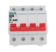 Выключатель-разъединитель серии ВН-102 DEKraft, 3P, номинальный ток 20 А, установка - на DIN-рейку, установочное положение - любое. Выключатели-разъединители применяются для ручного включения/отключения сетей напряжением до 400 В. Специальные мостиковые контакты обеспечивают надежный разрыв цепи, они полностью исключают возможность перекрытия дугой по изоляции. Усиленная рукоятка управления обеспечивает большое количество включений/отключений.